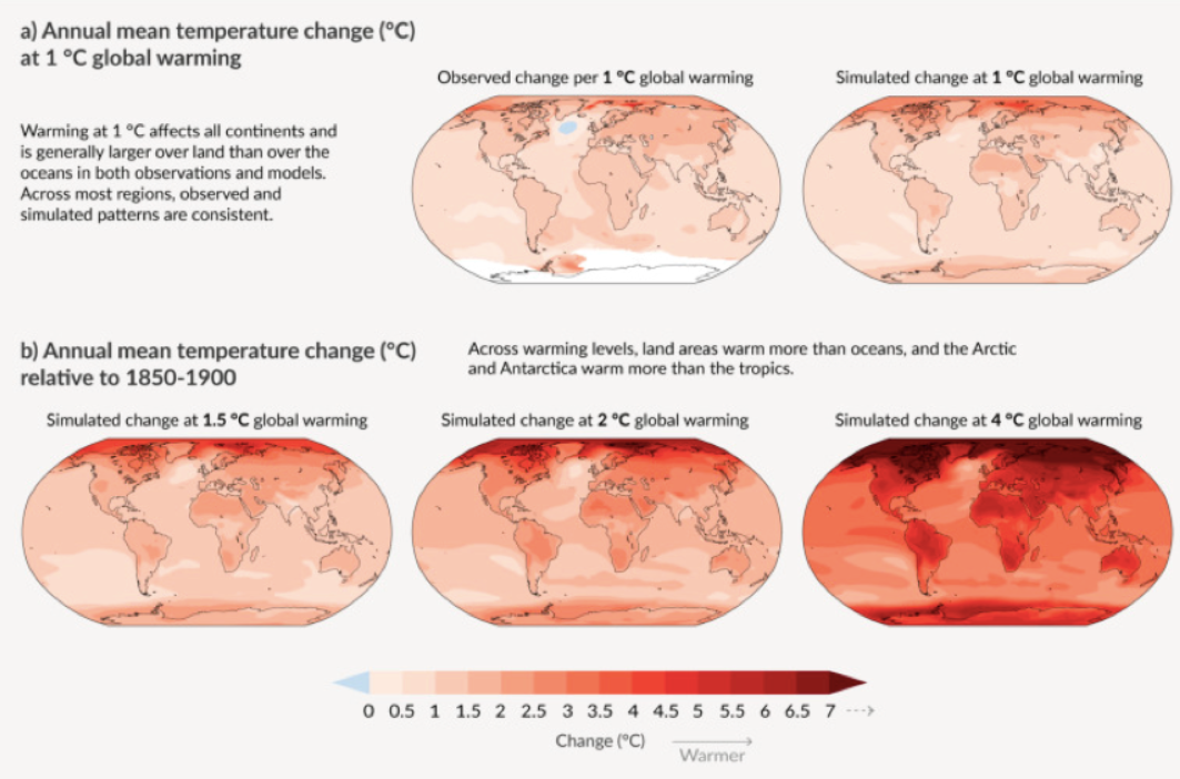 One of the most challenging points to convey when talking about climate change is the difference that an increase of one degree – or even half a degree – in global average temperatures makes, especially in terms of the impact this has at the local level. The recently released report by the Intergovernmental Panel on Climate Change (IPCC) summarizing the latest knowledge on the physical science basis of climate change includes a chart that shows this point for heatwave occurrence.[1] It shows, for example, how extreme heat events that used to occur once every 10 years will now (at current +1.2º C) occur 2.8 times every 10 years, and those that took place once every 50 years, now will do so 4.8 times in that period. With an increase of 1.5º C – which the IPCC report tells us we’ll reach in ca. 2040 – it will be 4.1 times for the once in a decade heatwave, and every 8.6 times for the once in five decades one. The frequency and also the intensity increase with every half degree.