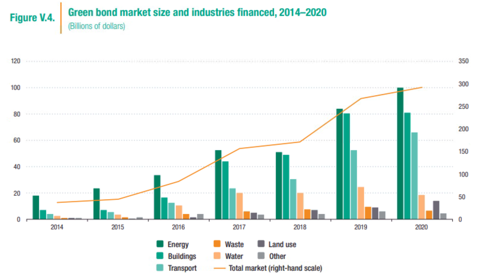 また、今年6月UNCTADが公表したWorld Investment Report 2021によれば気候変動対応のために発行されるグリーンボンドの市場も急伸していること、中でもエネルギー関連の資金調達が多い。