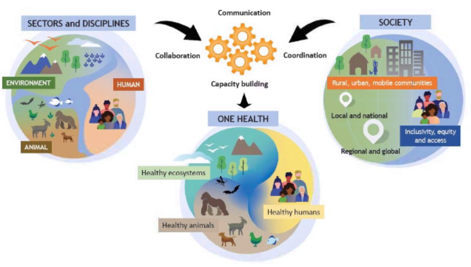 最後に これまでの事例等で、人間のWellbeingのためには、生物多様性回復が極めて重要であることを理解してもらえたと思う。COVID19の蔓延で、多くの人が健康な生活を送ることの重要性を改めて見つめ直した。 皆さんは「One health」という言葉を聞かれたことはあるだろうか。この言葉は、2000年代初めあたりから生物多様性や気候変動が人間の健康と密接な関連があることを表現する言葉として使われてきた。 2021年11月にはFAO(国際連合食糧農業機関)、OIE(国際獣疫事務局)、UNEP(国際連合環境計画)、WHO(世界保健機関)が新たに定義(One Health is an integrated, unifying approach that aims to sustainably balance and optimize the health of people, animals and ecosystems.(仮訳)ワンヘルスは人間、動物、エコシステムのサステナブルなバランスを目指し、同時に最適化するための統合的アプローチである)すると同時にハイレベル会議(OHHLEP)を創設し、4機関が実現に向け協働することを公表した。 出典: https://www.who.int/news/item/01-12-2021-tripartite-and-unep-support-ohhlep-s-definition-of-one-health