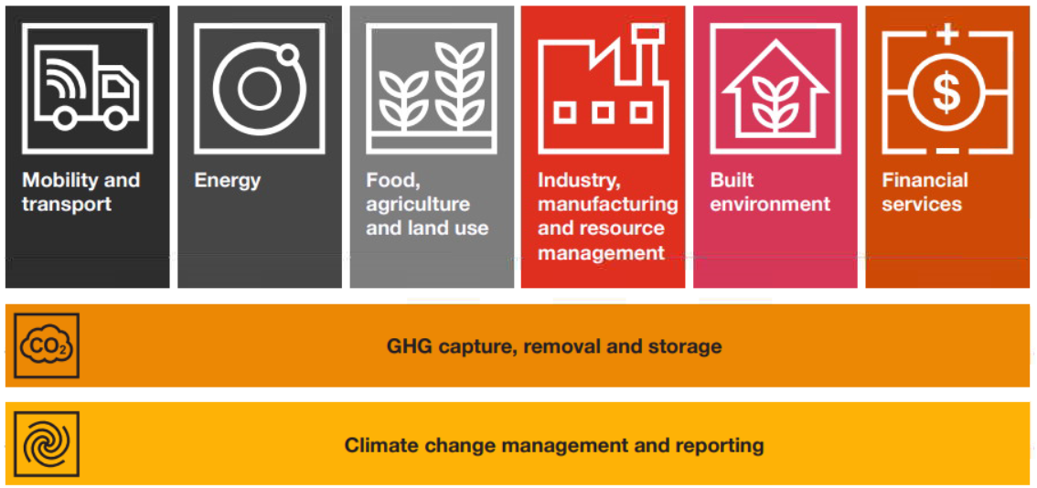 2021年公表されたPWCのレポートによれば、下記の領域が含まれている。このレポートにおいても、対象は広く、捉え方によっては、ほぼ全産業に関連しているのではないかとも思える。