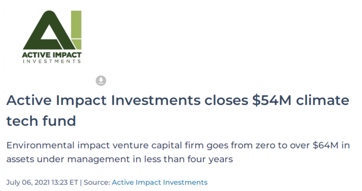 出典:https://www.globenewswire.com/news-release/2021/07/06/2258479/0/en/Active-Impact-Investments-closes-54M-climate-tech-fund.html