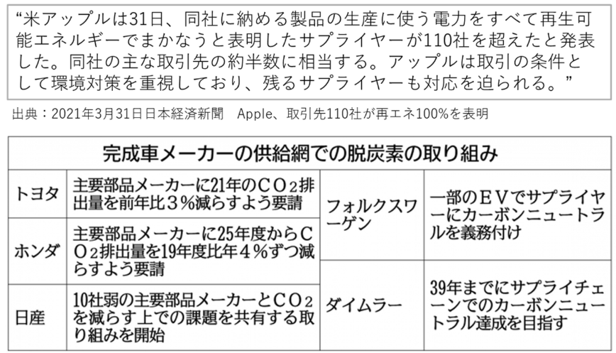 このような動きを受け、環境、再エネ、CO2削減に対して賛同するスキームができはじめています。下図は、TCFD,SBT,RE100全てに取り組んでいる企業を環境省が取りまとめた資料です。この中の主要なスキームを示します。 最も有名なのはRE100(Renewable Energy 100)で、自社で使う電源を再エネだけで賄うことを宣言し、それを実行していく企業が参加する団体です。日本企業は現状62社参加しており、世界で2番目に多いです。RE100は主にグローバル企業が参加していますが、より取り組みやすくするために、日本版RE100として、中小企業なども参加できるRE Actionも進んでいます。 次にSBT(Science Based Targets)が挙げられます。2021年のCOP26では、パリ協定で定めた温暖化防止の世界目標を、産業革命後からの気温上昇を1.5度以内に抑えるよう、目標が見直されました。SBTは、この目標を民間企業においても追及達成すべく、CO2削減目標を定め、実際に減らすことを宣言することを支援する枠組みです。参加企業数は、日本は世界3位という状況です。 最後にTCFD(Taskforce on Climate related Financial Disclosure)をご紹介します。TCFDでは、プライム市場の企業に対し、気候変動の影響の分析、計画立案、マネジメント体制構築といった内容を、投資家に説明していくことを求める枠組みです。TCFD賛同企業数は、日本は世界1位です。 以上のように、大企業を中心として、このような再エネ推進やCO2削減の枠組みに参加する日本企業も増えてきています。